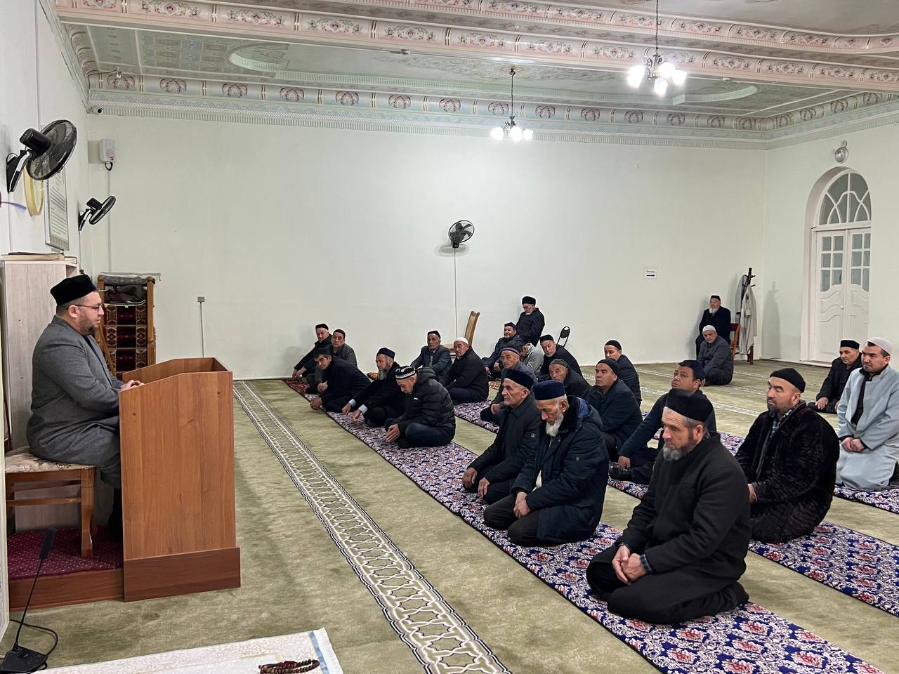 Жумладан, 12 феврал куни Паркент тумани, Номданак қишлоғидаги «Сирли» жомеъ масжидига ташриф буюрдилар. Аср намоздан сўнг масжидда йиғилган жамоатга илмий-маърифий суҳбат қилиб бердилар. Аввало масжид қавмини кириб келаётган муборак Рамазони шариф билан табриклаб, мазкур ойда қилинадиган ибодатлар, хатми Қуръонларнинг савоби бошқа ойларникидан бир неча баробар зиёда бўлиши, Рўзанинг фазилатлари, бу ойда маънан покланиш, бу ойнинг Қуръони карим ойи эканлиги, соф ақидани сақлаш, ақиданинг иймон билан чамбарчас боғлиқлиги ва нозик масала эканлиги мавзусида илмий-суҳбат қилиб бердилар. Суҳбат ниҳоясида жамоатни қизиқтирган саволларга жавоб бердилар.