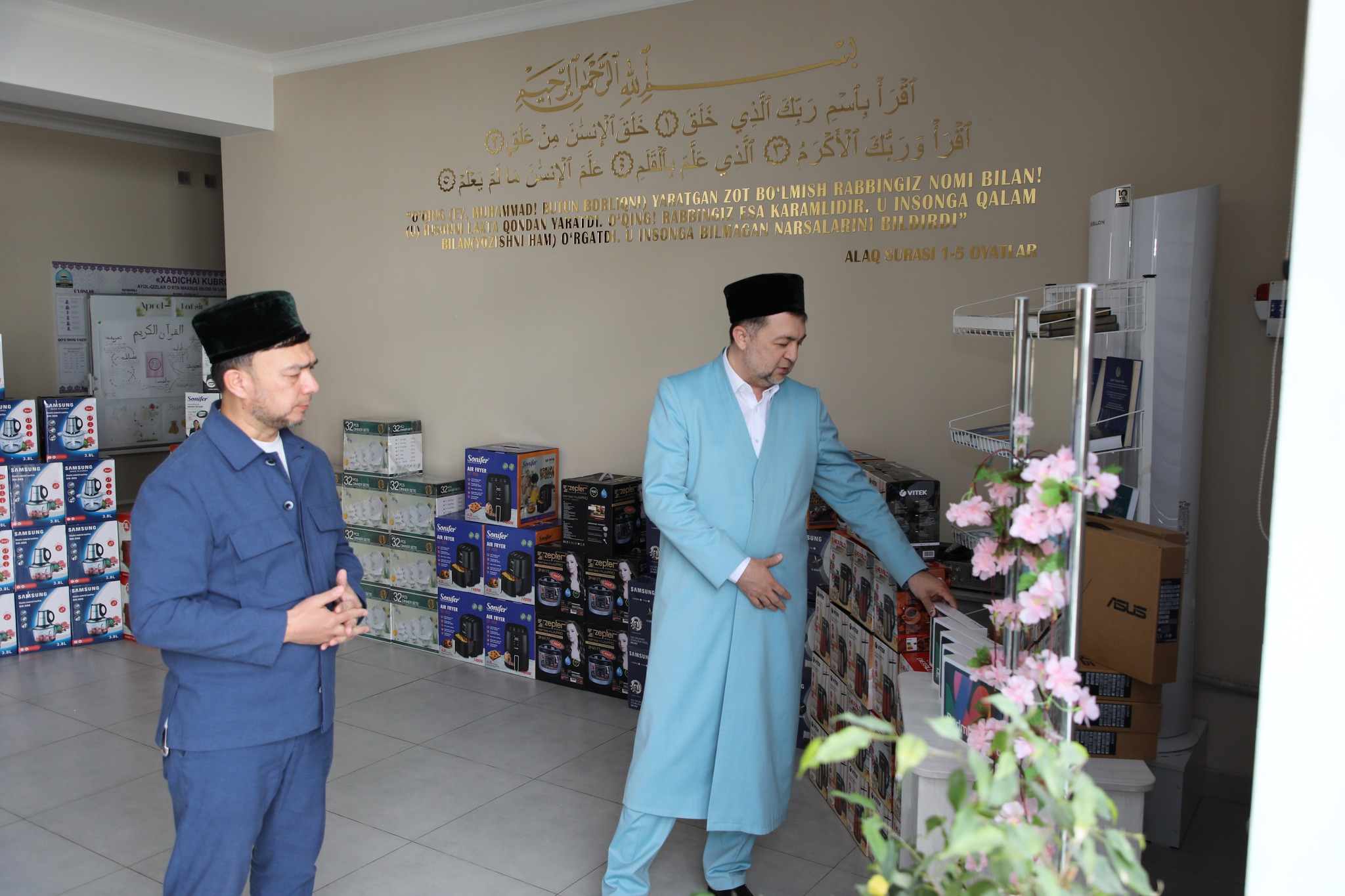 Бугун, 2 апрель куни Тошкент шаҳар бош имом-хатиби Абдуқаҳҳор домла Юнусов ва бош имом ўринбосари Абдуллоҳ домла Йўлдошев ҳомийларни жалб қилган ҳолда пойтахтимиздаги «Хадичаи Кубро» аёл-қизлар ўрта махсус ислом таълим муассасасига 80 миллион сўмга яқин компьтер, планшет ва бошқа маиший техника жиҳозларини ҳадя қилдилар.