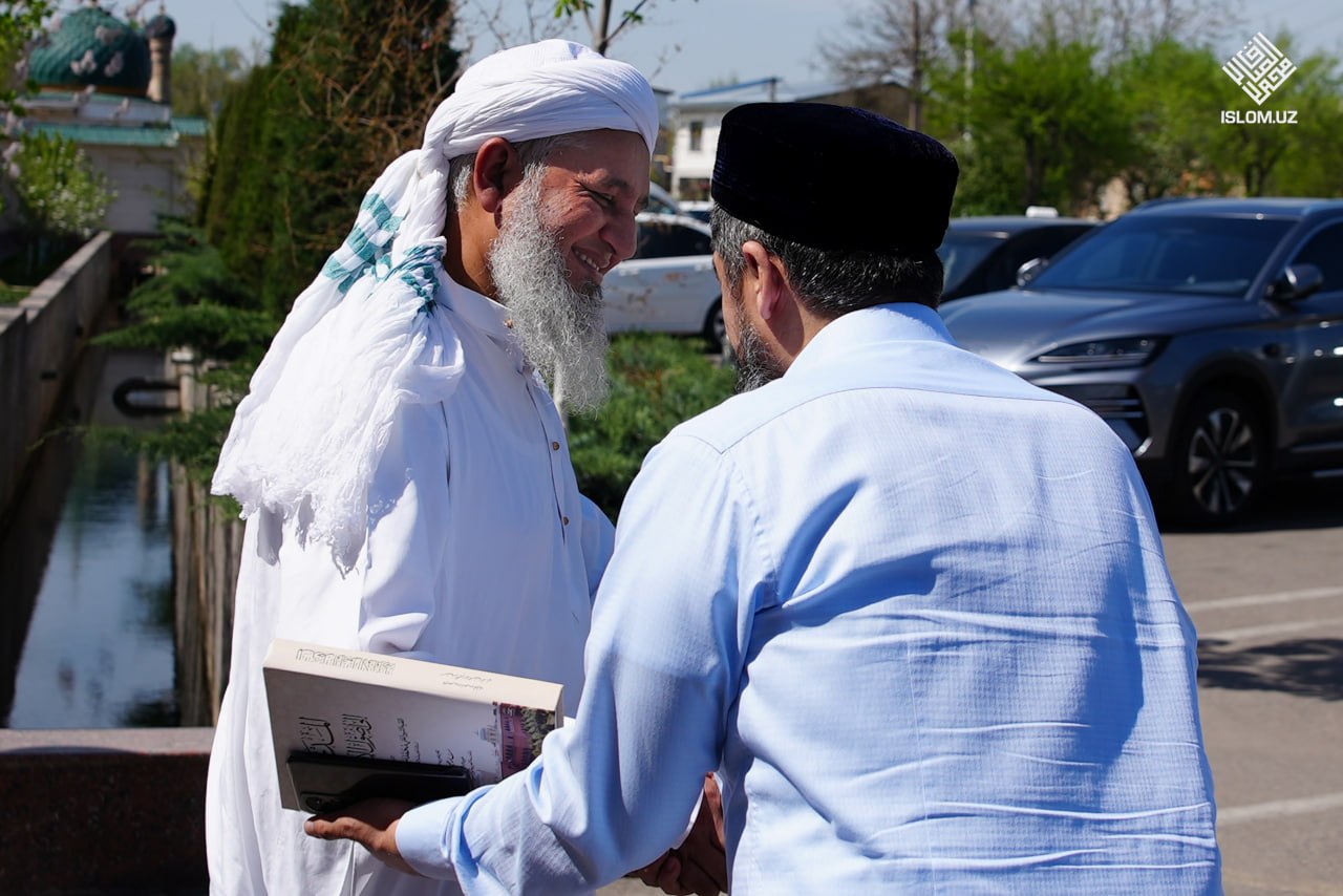 Меҳмонларимиз «Шайх Муҳаммад Содиқ Муҳаммад Юсуф» номидаги мажмуага ҳам ташриф буюриб, масжид имом-хатиби, устоз Исмоил Муҳаммад Содиқ билан учрашдилар, намоз ибодатини ўқиб, юртимизга тинч-осойишта, фаровон ҳаёт тилаб дуолар қилдилар.