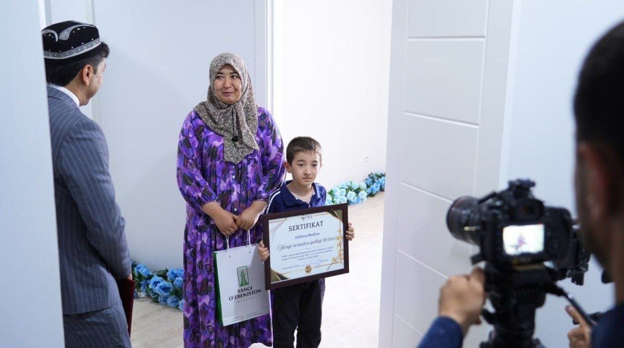 Янги хонадон калитларини қабул қилиб олаётган оилаларнинг қувонч кўзёшлари ва самимий дуолари тадбир иштирокчиларини тўлқинлантириб юборди.