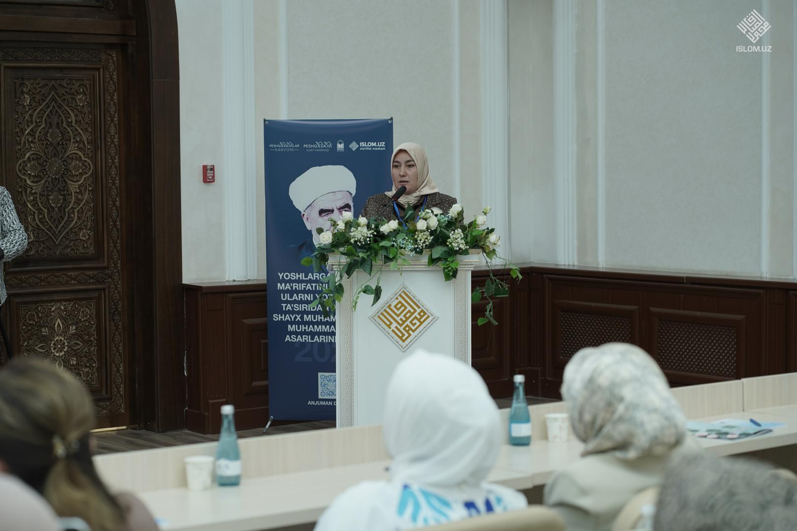 Анжуманнинг иккинчи қисмида Хадичаи Кубро ўрта махсус Ислом таълим муассасаси катта ўқитувчиси, Ҳилол Нашр нашриёт-матбааси директор ўринбосари, «Пешқадамлар Карвони» таъсисчиси, исломшунос олима Одинахон Муҳаммад Содиқ «Шайх Муҳаммад Содиқ Муҳаммад Юсуф асарлари ватанпарварлик ва миллий қадриятларни асраш ғояларининг манбайидир», Ўзбекистон халқаро Исломшунослик академияси Ўзбек ва хорижий тиллар кафедраси доценти, филология фанлари бўйича фалсафа доктори (PhD) Муминова Дилшодахон «Маънавий тарбия жараёнида тилнинг тарбиявий функцияси ва унинг ёшлар онгига таъсирида шайх Муҳаммад Содиқ Муҳаммад Юсуф асарларининг ўрни», Имом Бухорий номидаги Тошкент Ислом институти доцент в.б., исломшунослик фанлари бўйича фалсафа доктори (PhD) Махфузахон Жалолдинова «Ёшларнинг соф Ислом маърифати билан камол топишида Ихтилофлар сабаблар ва ечимлар асарининг ўрни», Ёшлар муаммоларини ўрганиш ва истиқболли кадрларни тайёрлаш институти доценти, педагогика фанлари бўйича фалсафа доктори (PhD) Чарос Мирхолиқова «Шайх Муҳаммад Содиқ Муҳаммад Юсуф асарларида руҳий тарбия ва маънавий интеллект масалалари», Тиббиёт фанлари бўйича фалсафа доктори (PhD), психотерапевт Гавҳар Дарвиш «Руҳий тарбия концепциясининг замонавий психотерапиядаги илмий-амалий аҳамияти», Ўзбекистон халқаро исломшунослик академияси таянч докторанти Шаҳзода Абдураимова «Конфессиялараро бағрикенгликни мустаҳкамлашда islom.uz ва muslimaat.uz медиаконтентларининг аҳамияти» мавзуларида маърузалар қилишди.