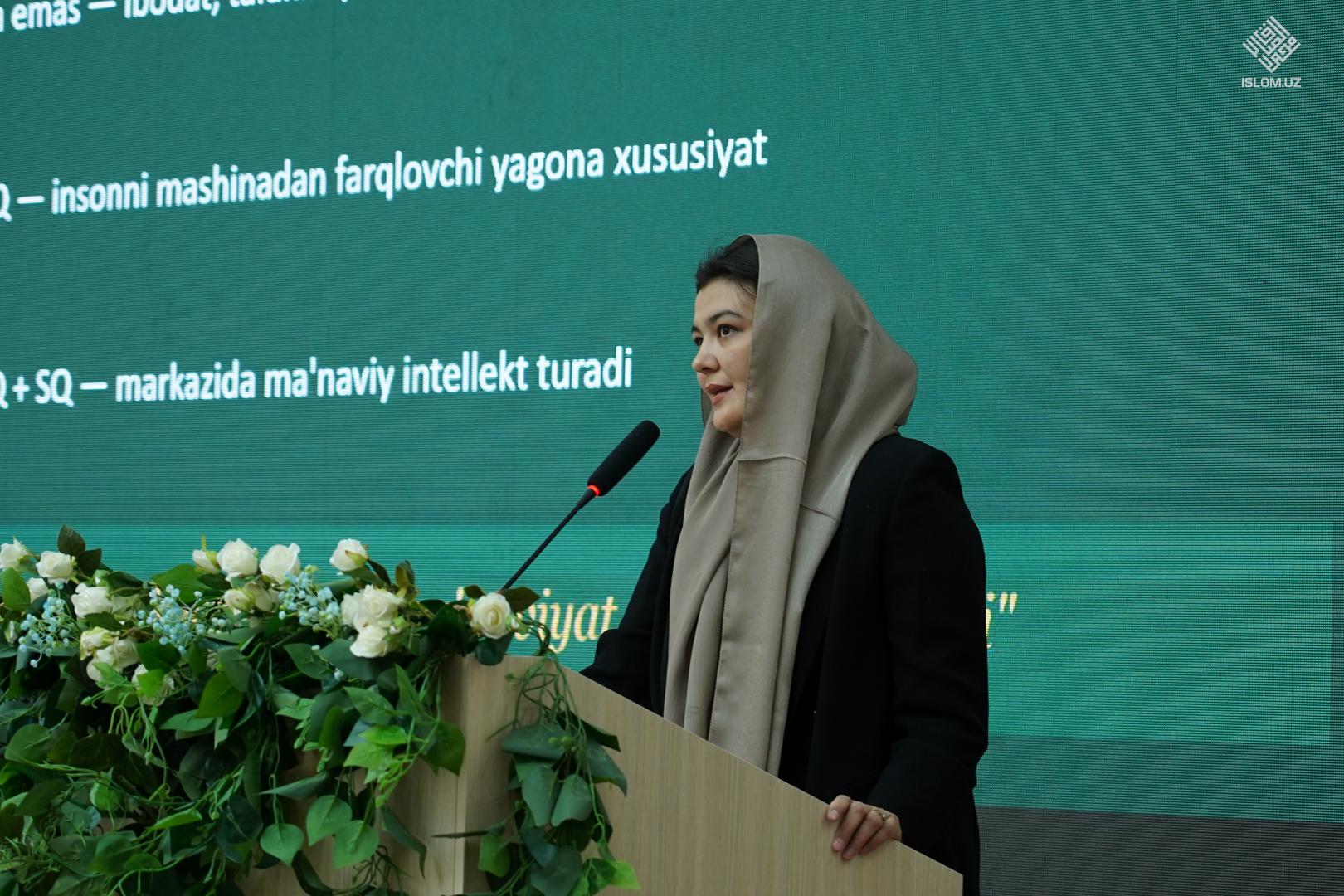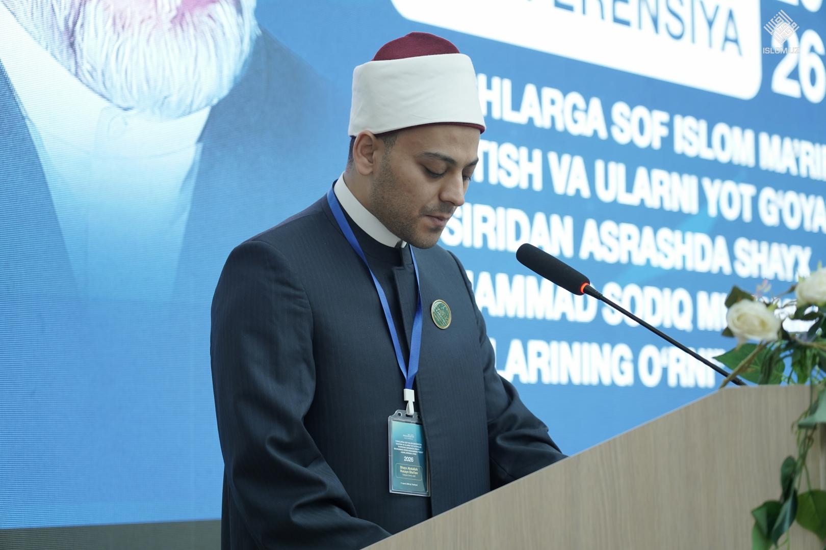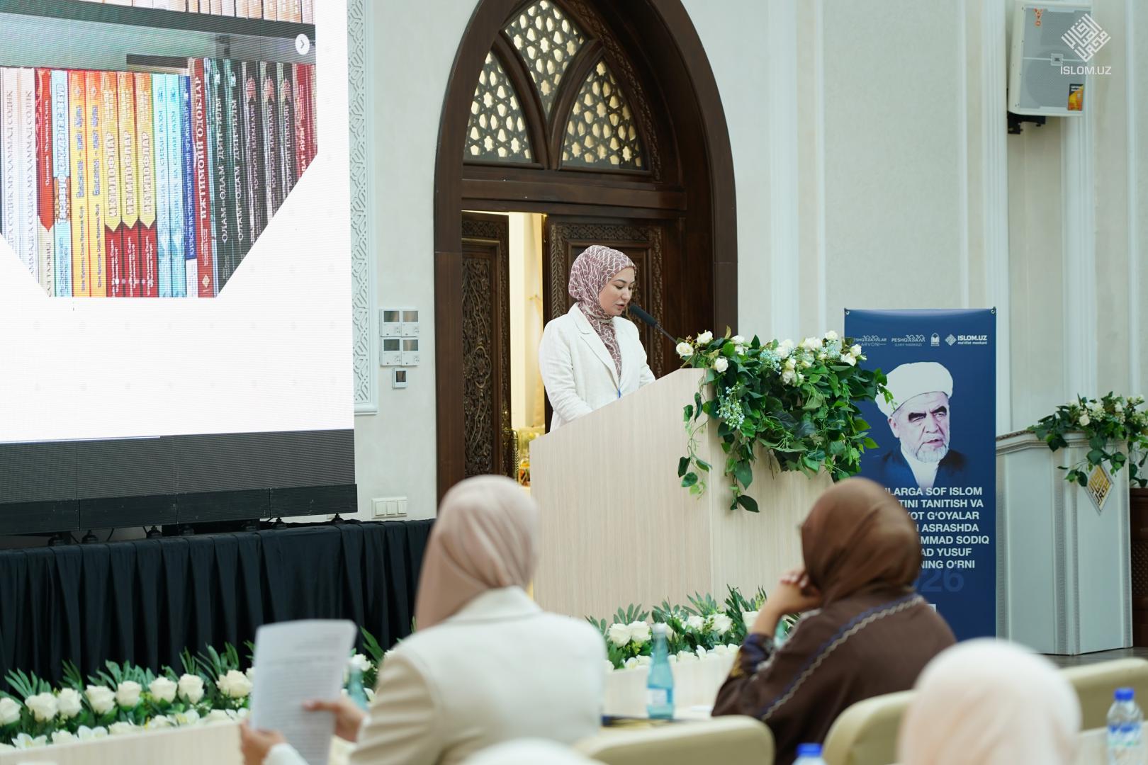 Анжуманнинг биринчи қисмида Ўзбекистон халқаро исломшунослик академияси профессори, психология фанлари доктори Хўжакелди Алимов «Руҳ ва психика ўртасидаги муносабатлар муаммоси ва унинг психологик ечими», Имом Бухорий номидаги Тошкент Ислом институти доценти, тарих фанлари бўйича фалсафа доктори (PhD) Нозима Иброҳимова «Ёш авлод тарбиясида мазҳаб тутиш аҳамияти ва фатво беришдан эҳтиёткорлик принципи», Ўзбекистон халқаро исломшунослик академияси профессори, тарих фанлари доктори Илҳом Бекмирзаев «Шайх Муҳаммад Содиқ Муҳаммад Юсуфнинг фиқҳий билимларни ёш авлодга етказишдаги ўрни», Ўзбекистон халқаро исломшунослик академияси тадқиқотчиси Абдуваҳоб Тўхтаназаров «Янги Ўзбекистонда ёшларни соф Ислом маърифати асосида тарбиялашда Шайх Муҳаммад Содиқ Муҳаммад Юсуф асарларининг ўрни», Туркиядаги Имом Молик Халқаро Илмлар Академияси магистранти Лолахон Хамдамова «Дерадикализатсия жараёнида Шайх Муҳаммад Содиқ Муҳаммад Юсуфнинг ақидавий мактабидан фойдаланиш методикаси», Самарқанд давлат чет тиллар институти доценти, филология бўйича фалсафа доктори (PhD) Нуржамол Норматова «Сунъий интеллект даврида олий таълим талабаларининг касбий ва шахсий фазилатларини ривожлантириш» мавзуларида маъруза қилдилар.