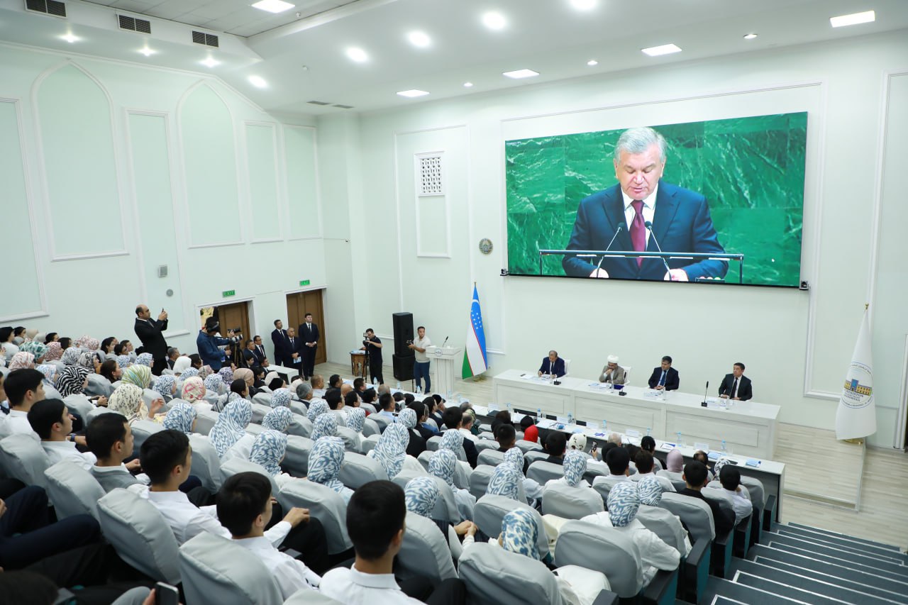 – БМТ Бош Ассамблеясининг 80-сессиясида Ўзбекистон Республикаси Президенти Шавкат Мирзиёев томонидан илгари сурилган ғоя ва ташаббуслар бугунги анжуманга илмий-маънавий асос бўлиб хизмат қилади, – деди ректор Музаффар Комилов. – Бу чиқиш нафақат мамлакатимиз, балки бутун минтақа ва жаҳон миқёсида катта қизиқиш уйғотди.