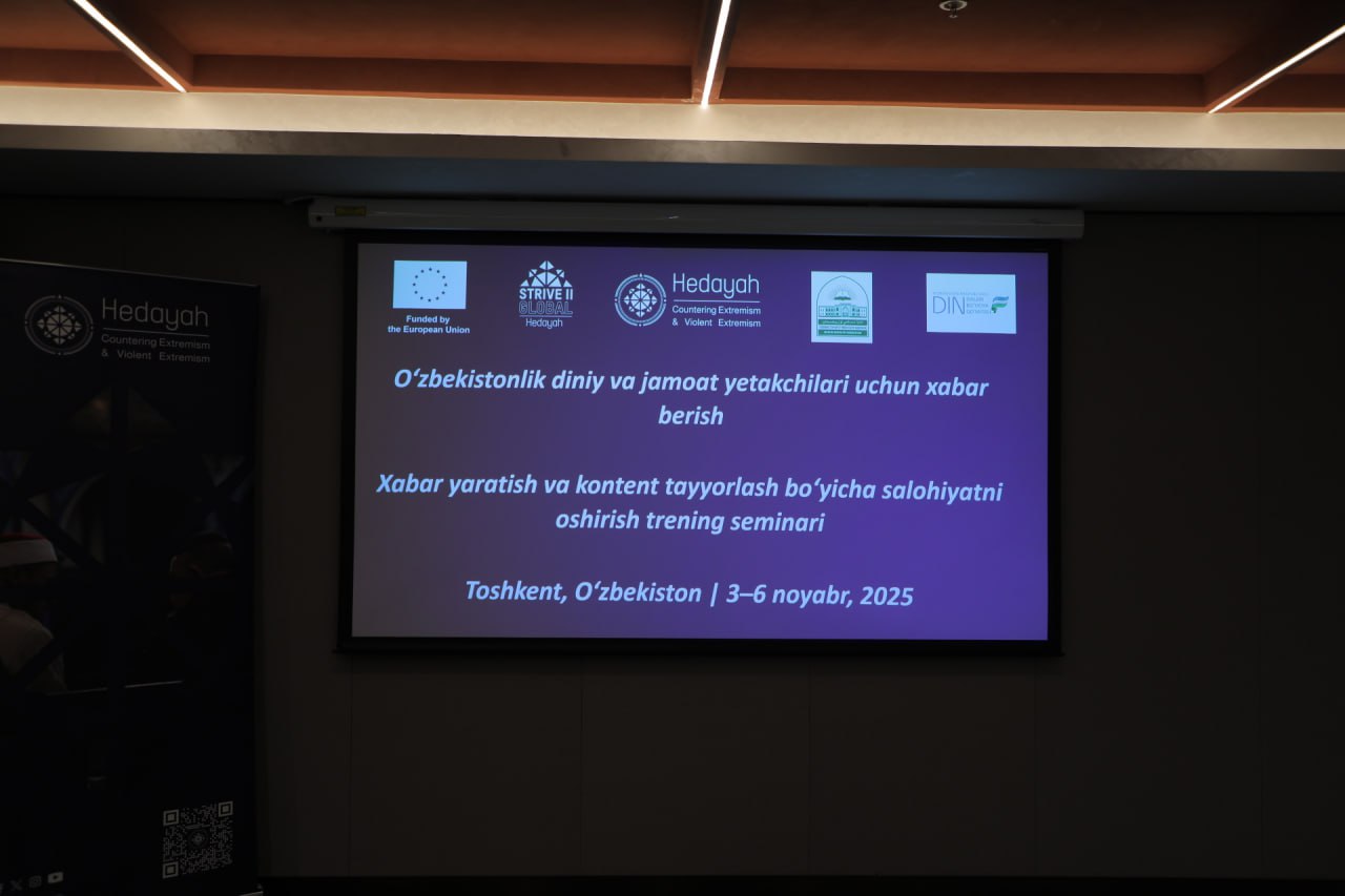 ⏳Уч кун давом этадиган семинар-тренингда юртимиз диний соҳа ходимлари ва “Hedayah” халқаро маркази вакиллари ўзаро тажриба алмашиш баробарида медиа контент тайёрлаш бўйича замонавий билим ва кўникмаларга эга бўлади.