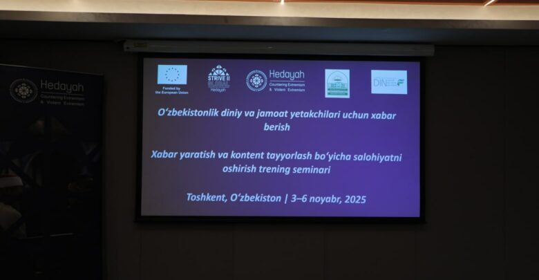 Шу йил 3-6 ноябрь кунлари Тошкент шаҳридаги “Swissôtel Tashkent” меҳмонхонасида диний соҳа вакилларининг медиа контент тайёрлаш салоҳиятини ошириш бўйича семинар-тренинг бўлиб ўтмоқда. Унда Диний идора ва Дин ишлари бўйича қўмита масъул ходимлари, Қорақалпоғистон Республикаси, вилоятлар ва Тошкент шаҳар масжидларида фаолият юритувчи имом-хатиблар иштирок этмоқда.