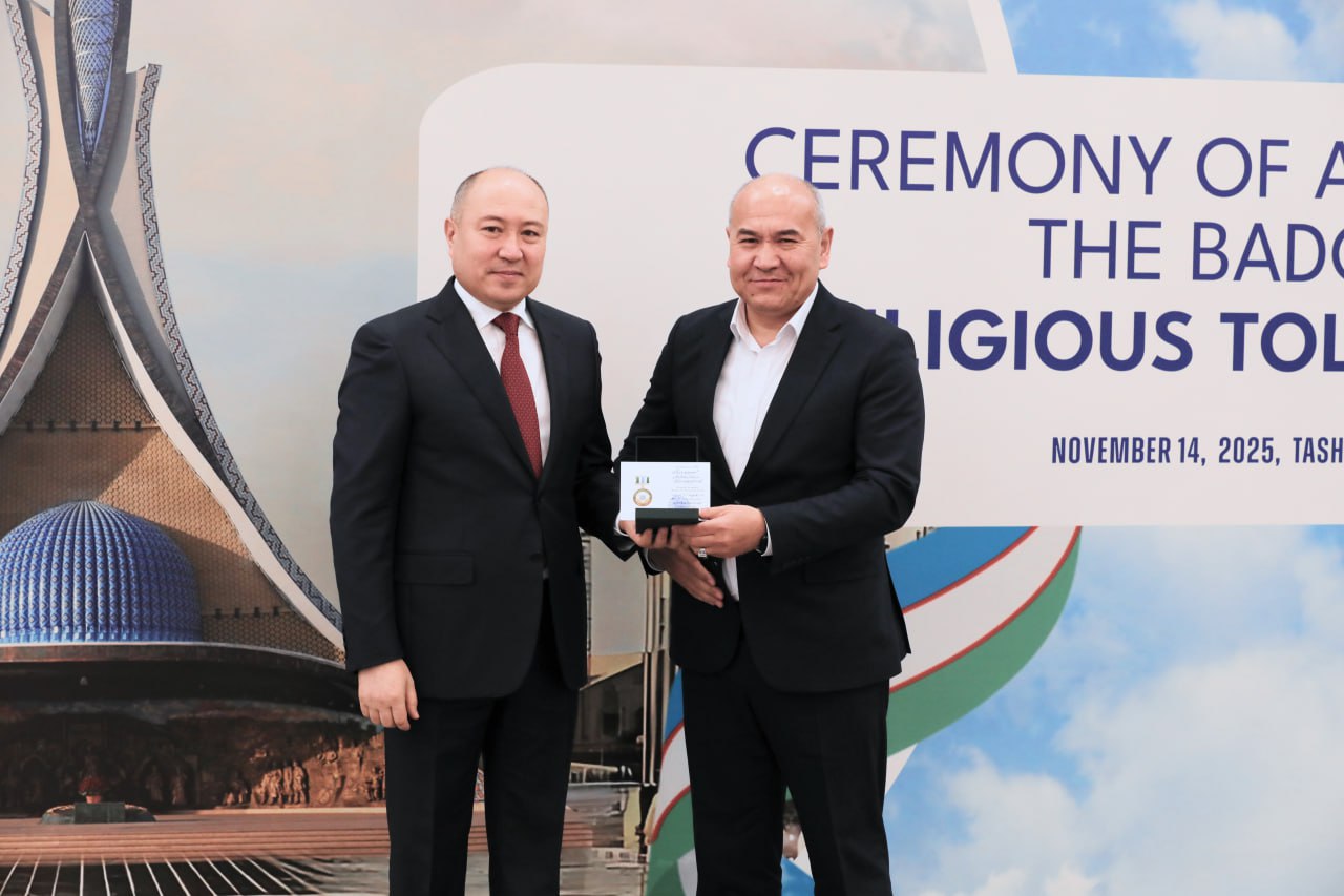 Маълумот учун, Вазирлар Маҳкамасининг 2023 йил 25-сентабрдаги “Диний бағрикенглик” кўкрак нишонини таъсис этиш тўғрисида”ги қарорига кўра, ушбу кўкрак-нишони билан диний-маърифий соҳадаги ислоҳотларни тарғиб этиш, фуқаролар эътиқод эркинлигини таъминлаш, динлараро ҳамжиҳатликни мустаҳкамлаш ва маънавий муҳит барқарорлигини сақлашдаги ибратли ишлари учун етук уламолар, атоқли арбоблар, диний соҳа раҳбарлари, халқаро ташкилотлар вакиллари ҳамда хорижий олимлар тақдирланиши белгиланган.