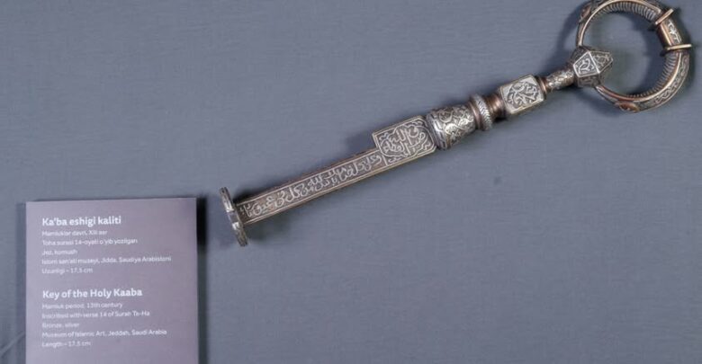 «Экспозицияда намойиш этилаётган Каъбанинг икки калити мамлуклар даврига мансуб бўлиб, мисдан, жездан ясалиб, кумуш билан қадама усулида безатилган ва Ҳаж сурасининг 27-ояти ўйиб ёзилган. Иккинчиси эса Тоҳо сурасининг 14-ояти билан безатилган.