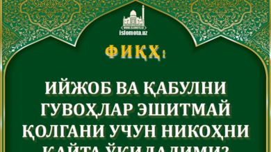 МУҲИМ: ИЙЖОБ ВА ҚАБУЛНИ ГУВОҲЛАР ЭШИТМАЙ ҚОЛГАНИ УЧУН НИКОҲ ҚАЙТА ЎҚИЛАДИМИ?